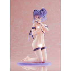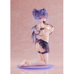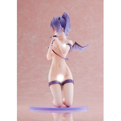 La figurine s’appuie uniquement sur ce qui est visible : Kamiguse chan est agenouillée, vêtue d’une mini-jupe sombre et de jarretelles assorties, tandis que son buste est dénudé. Ses petites ailes sombres et ses oreilles de créature démoniaque accentuent l’aspect fantastique. Ses cheveux violets courts et attachés en couettes encadrent son visage, accompagné d’une expression timide et légèrement boudeuse. Le socle n’apparaît pas sur l’image mais son absence visible indique qu’elle est présentée de manière simple et épurée.