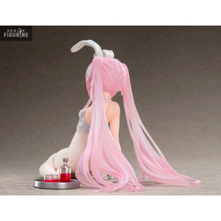 La figurine "Ruby" est une création originale qui incarne l'élégance et la séduction. Vêtue d'un costume de bunny blanc, elle adopte une pose à genoux qui dégage une aura de charme. Ses cheveux roses ajoutent une touche de couleur vive à son apparence. Mais ce n'est pas tout, car cette figurine est également dotée d'un plateau contenant une bouteille de Ruby et deux verres, ce qui évoque une atmosphère de célébration et de plaisir partagé. Il y a même un troisième verre, laissant place à l'imagination pour interpréter cette scène. Dans l'ensemble, la figurine "Ruby" capture l'esprit enjoué et sensuel du personnage, créant une pièce de collection qui ne manquera pas de susciter l'admiration et l'envie de tous les amateurs de figurines. Une œuvre qui évoque la sophistication et la festivité dans un format artistique.