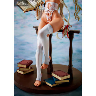 La figurine "3nd Villager Mercedes" de la série "Dark Elf Village" incarne un personnage original vivant dans un village d'elfes noirs. Dans cette représentation, Mercedes est délicatement assise sur un tabouret, tenant un livre qui semble contenir de précieuses connaissances. Le socle de la figurine est orné de plusieurs autres livres, renforçant l'idée d'une passion pour l'apprentissage et la sagesse au sein de la communauté des elfes noirs. L'attention aux détails dans la conception de cette figurine est remarquable, de la finesse des traits du visage de Mercedes à la texture des livres qui l'entourent. La pose assise et le regard concentré de Mercedes dégagent une atmosphère d'introspection et d'étude, ajoutant une profondeur à son personnage. Cette figurine est un hommage à l'univers fantastique des elfes noirs et ravira les collectionneurs en quête de créations originales et de qualité. Elle est une représentation fidèle de la beauté et de la quête de connaissance qui caractérisent le monde des elfes noirs, et elle mérite une place de choix dans toute collection dédiée à la fantasy.