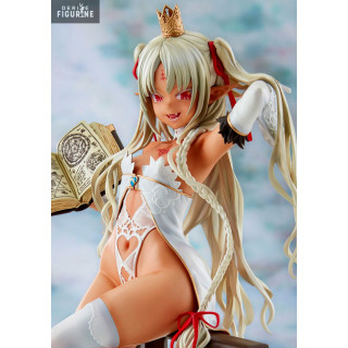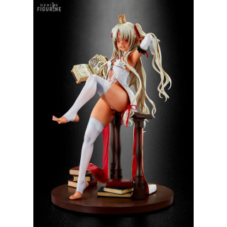 La figurine "3nd Villager Mercedes" de la série Dark Elf Village est une représentation d'un personnage original. Mercedes, une jeune elfe noire, est délicatement sculptée et finement peinte, capturant ainsi sa grâce et sa beauté. Elle est assise élégamment sur un tabouret, tenant un livre dans une de ses mains, ce qui reflète son amour pour la lecture et la connaissance. Le socle de la figurine est également soigneusement conçu pour correspondre au thème, avec plusieurs livres dispersés autour d'elle, créant ainsi une ambiance chaleureuse de bibliothèque. L'édition "Antenna Shop Limited Edition" ajoute une touche supplémentaire en incluant des accessoires optionnels. Vous pouvez changer l'expression du visage de Mercedes pour lui donner un air astucieux, et même ses pieds peuvent être modifiés pour varier sa pose. De plus, cette édition spéciale comprend un cadre de base argenté, offrant un support élégant à la figurine. Enfin, un rouleau mural A3 est inclus, ce qui en fait un ajout précieux à la collection pour les amateurs de la série Dark Elf Village. La figurine capture non seulement la beauté du personnage, mais aussi son amour pour l'apprentissage et les connaissances, en faisant un objet de collection unique et attrayant pour tout passionné de figurines.