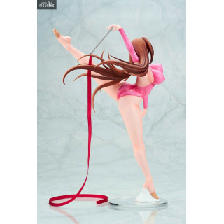 Voici la belle Sumikawa Nagisa dans un body rose qui lui va comme un gant. Comme vous pouvez le voir, elle est en pleine représentation de ruban, une discipline de gymnastique rythmique. Elle mêle souplesse et grâce dans cette pose.