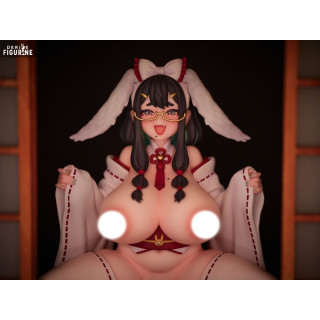 Adoptant une pose qui reflète à la fois innocence et espièglerie, Choco Chan est la représentation d'un personnage mi-ange, mi-démon, avec des ailes de lapin douces et un costume qui allie la pureté du blanc à des touches de rouge passionné. Ses accessoires, tels que les petites lunettes dorées et les bijoux discrets, ajoutent une touche d'élégance à son allure enjouée.