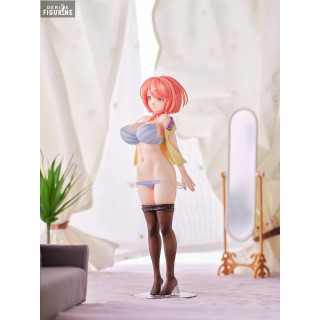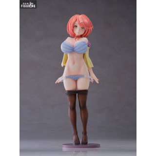 Avec son bikini rayé bleu et blanc, Akira fait une pause pleine de charme, enlevant timidement sa jupe pour révéler ses formes harmonieuses. Le contraste des couleurs, la douceur de la peau sculptée et la précision du détail font de cette figurine un objet de désir pour tous les admirateurs de l'œuvre de RAITA. Elle est complétée par une cape jaune éclatante, drapée sur ses épaules, ajoutant une touche de mystère et d'élégance.
