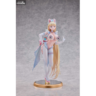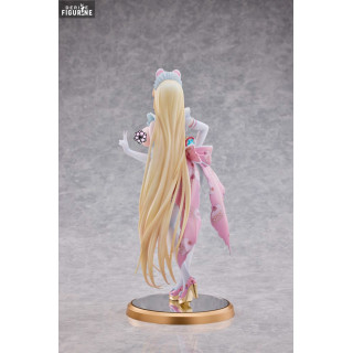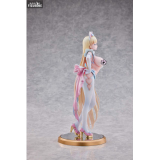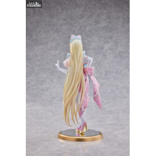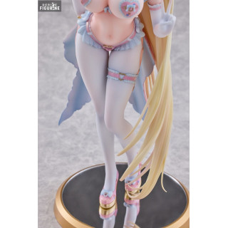 Sadie est une création originale de Mendokusai, qui a su lui donner vie avec une esthétique unique et un sens du détail époustouflant. Cette figurine présente Sadie dans une tenue qui mêle sensualité et sophistication. Vêtue de lingerie délicate aux teintes pastel, elle arbore des accessoires élaborés, tels qu’un serre-tête orné de nœuds et des rubans, des bas blancs semi-transparents, et des talons hauts rose et or. Chaque élément de sa tenue est finement sculpté et peint, mettant en valeur les courbes gracieuses et la posture confiante du personnage.