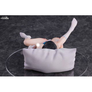 La figurine représente une jeune fille venant du futur, capturant l'imagination avec son design audacieux et ses poses suggestives. Vêtue d'un uniforme futuriste, chaque élément de sa tenue est soigneusement détaillé, des plis de son vêtement aux nuances subtiles de ses couleurs. La pose allongée de la figurine, accompagnée d'un oreiller, ajoute une touche de réalisme et de confort, créant une scène qui semble tirée directement d'une histoire de science-fiction intrigante.