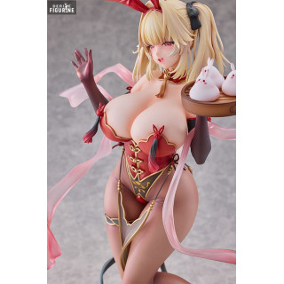 La figurine Stella est représentée dans une pose dynamique et gracieuse, capturant parfaitement l'esprit espiègle et séduisant de la collection Cheongsam Bunny. Vêtue d'un magnifique cheongsam rouge revisité dans un style moderne et provocateur, Stella dégage une aura captivante qui attire immédiatement l'œil. Le cheongsam, traditionnellement une robe chinoise, est ici transformé en un costume de bunny girl, offrant un contraste intrigant entre tradition et modernité.