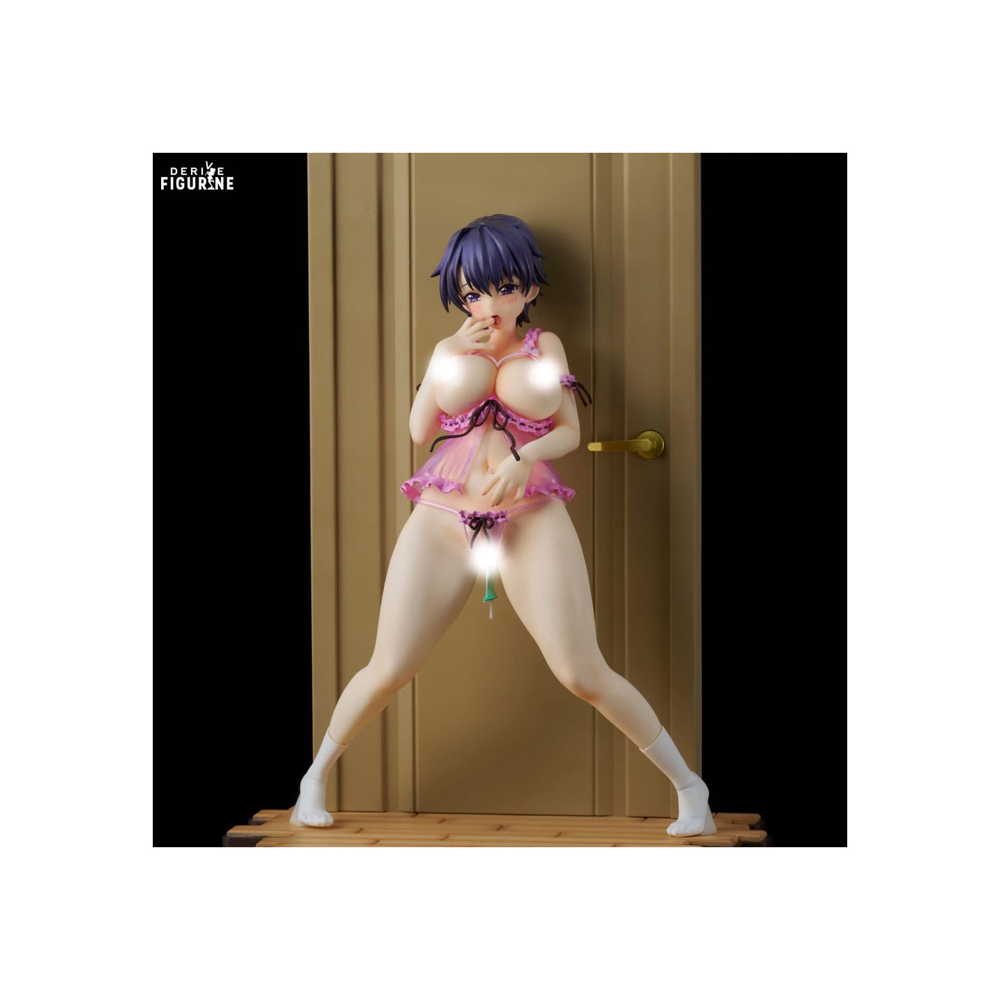 La figurine capture Makoto Himemiya dans une pose audacieuse et sensuelle, portant une tenue de lingerie rose délicate qui souligne ses courbes avec élégance. Les détails de la tenue, notamment les rubans et les volants, sont finement sculptés pour reproduire fidèlement l'illustration originale de Mutya. La posture de Makoto, les mains effleurant son corps, exprime une innocence mêlée de curiosité, créant une scène à la fois intrigante et séduisante.