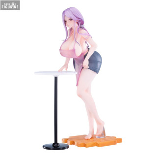 Kyou no Yuushoku Yuki est représentée ici dans une pose séduisante, appuyée sur une table avec une expression douce et captivante. Son allure élégante et son attitude confiante se reflètent à travers sa tenue audacieuse et détaillée. La finesse de sa robe, combinée à la texture réaliste de ses vêtements, met en valeur ses courbes et ajoute une dimension supplémentaire à cette figurine déjà impressionnante.