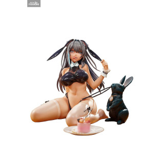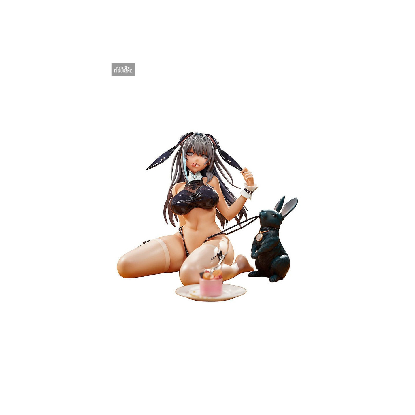 La figurine présente Cocoa dans une pose assise sensuelle, accompagnée d'un adorable lapin noir qui ajoute une touche de mystère et de charme à l'ensemble. Le design audacieux et les couleurs vives attirent immédiatement l'œil, tandis que les détails comme les oreilles de lapin, les accessoires et la petite pâtisserie devant elle ajoutent de la profondeur et du réalisme à cette œuvre d'art.