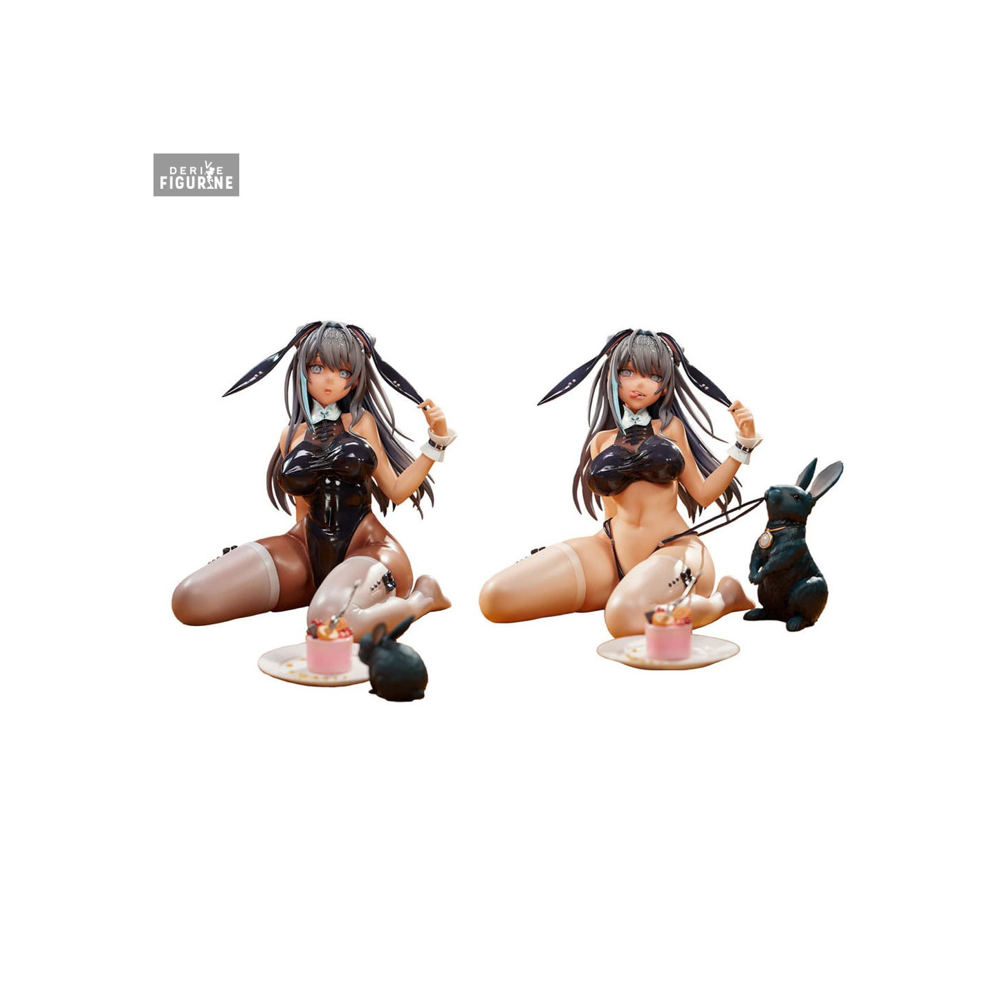 Le double set présente deux versions captivantes de Totsuki Cocoa, chacune dans une pose sensuelle et pleine de charme. Vêtue d'un ensemble audacieux de Bunny girl, Cocoa est représentée assise de manière décontractée, ajoutant une touche de mystère et d'élégance. Le costume en vinyle noir brillant, combiné à des bas résille et des accessoires de lapin, accentue son allure provocante et sophistiquée. Les détails de sa tenue, y compris les oreilles de lapin et les poignets assortis, sont minutieusement sculptés pour offrir un rendu réaliste et captivant.