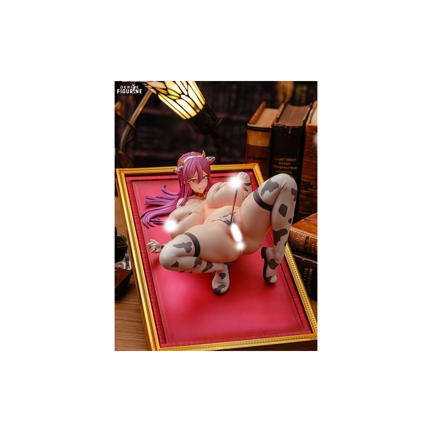 Le costume de Terrena est orné de motifs de vache, avec des détails précis qui ajoutent une touche de fantaisie à l'ensemble. Les textures de la peau et des vêtements sont finement sculptées, offrant un rendu réaliste et esthétique. Ses longs cheveux violets sont soigneusement modelés pour donner une impression de mouvement et de fluidité, renforçant ainsi le dynamisme de la pose.