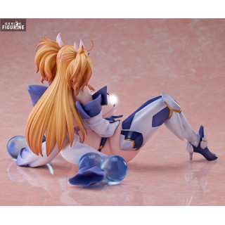 La figurine capture Kirara dans une pose provocante et confiante, soulignant sa personnalité audacieuse et son allure séduisante. Son costume détaillé, composé d'armures élégantes et d'éléments futuristes, est fidèlement reproduit, offrant un rendu visuel impressionnant qui respecte le design original du personnage.