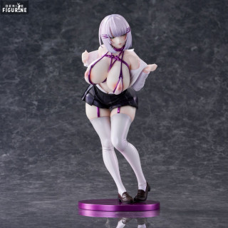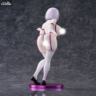 Dans l'univers de Mitsudoue, la "Silver-haired girl" incarne une figure à la fois innocente et provocatrice. Ses longs cheveux argentés, coupés en carré, et ses yeux perçants sont ses caractéristiques les plus remarquables. Cette jeune femme dégage une aura de sensualité subtile, accentuée par sa tenue qui mélange des éléments d'uniforme scolaire avec des touches audacieuses et modernes. L'illustrateur Mitsudoue, connu pour ses représentations féminines aux formes généreuses, capture ici une esthétique unique où le raffinement côtoie la provocation.