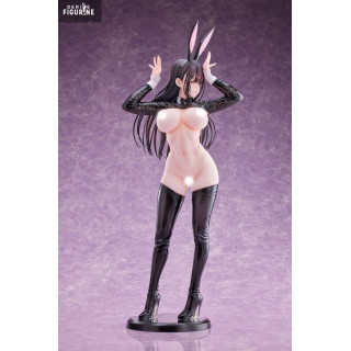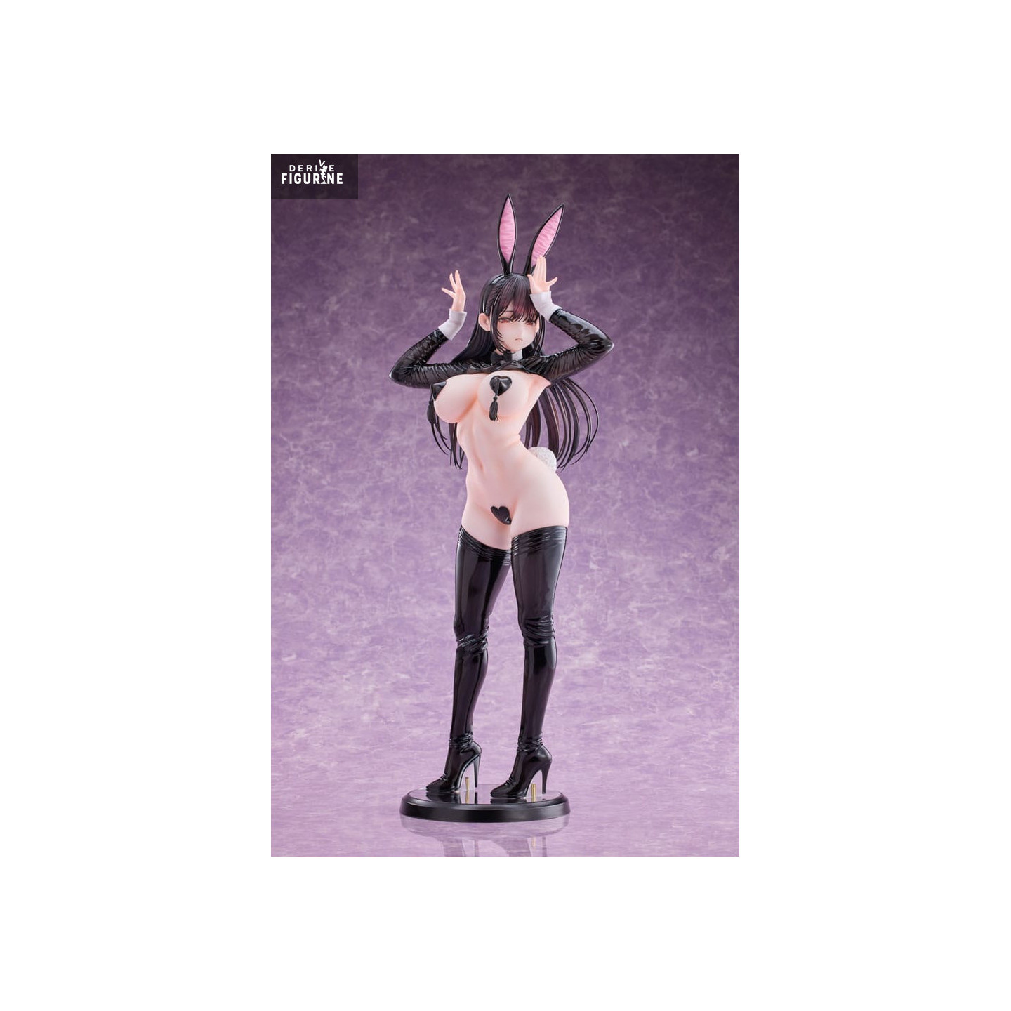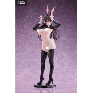 Cette pièce unique met en scène une interprétation séduisante du concept de "bunny girl", mais avec une touche inversée qui accentue l'originalité et l'élégance du personnage. La figurine présente une pose suggestive et dynamique, soulignant la silhouette élancée et les courbes généreuses du personnage. Les oreilles de lapin, emblématiques de ce style, sont ici intégrées avec une touche de sensualité, accompagnées de longs gants noirs et de cuissardes en vinyle, ajoutant une texture luxueuse et une brillance captivante qui contraste magnifiquement avec la douceur de la peau du personnage.