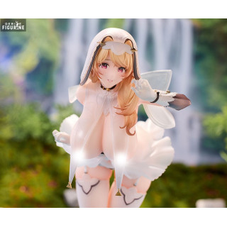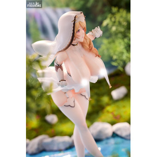 L'esthétique de la prêtresse est mise en valeur par une tenue légère et détaillée, rappelant ses origines sacrées et ses pouvoirs célestes. Le voile blanc qui encadre son visage et ses cheveux dorés ajoute une touche d'innocence à son apparence globale, contrastant avec la sensualité que dégage son costume. La figurine présente également des accessoires dorés subtils qui soulignent son statut de prêtresse. Cette prêtresse fait appel à des pouvoirs mystiques, symbolisés par des lumières éthérées sur son costume, qui apportent une touche magique à l'ensemble.