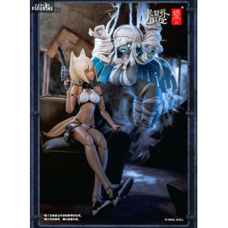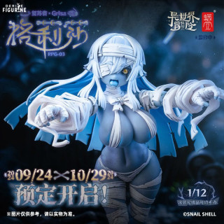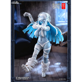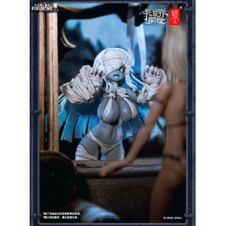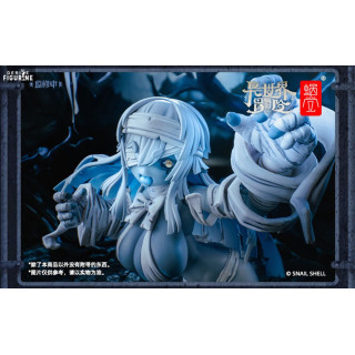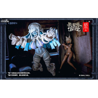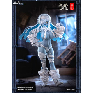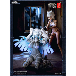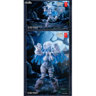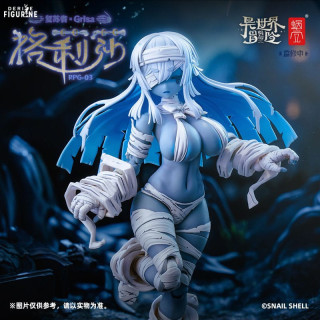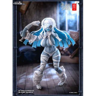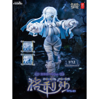 Plongez dans un univers fantastique et effrayant avec cette figurine officielle de Zombie Girl Grisa, issue de la série RPG. Grisa, représentée dans toute sa splendeur macabre, est une créature mystérieuse enveloppée de bandelettes comme une momie moderne, prête à hanter les terres inconnues. Ses yeux perçants, cachés sous ses mèches blanches, donnent vie à un personnage à la fois effrayant et intrigant. L'attention portée aux détails de ses cheveux et de ses vêtements déchirés renforce l'aura mystique qui l'entoure.