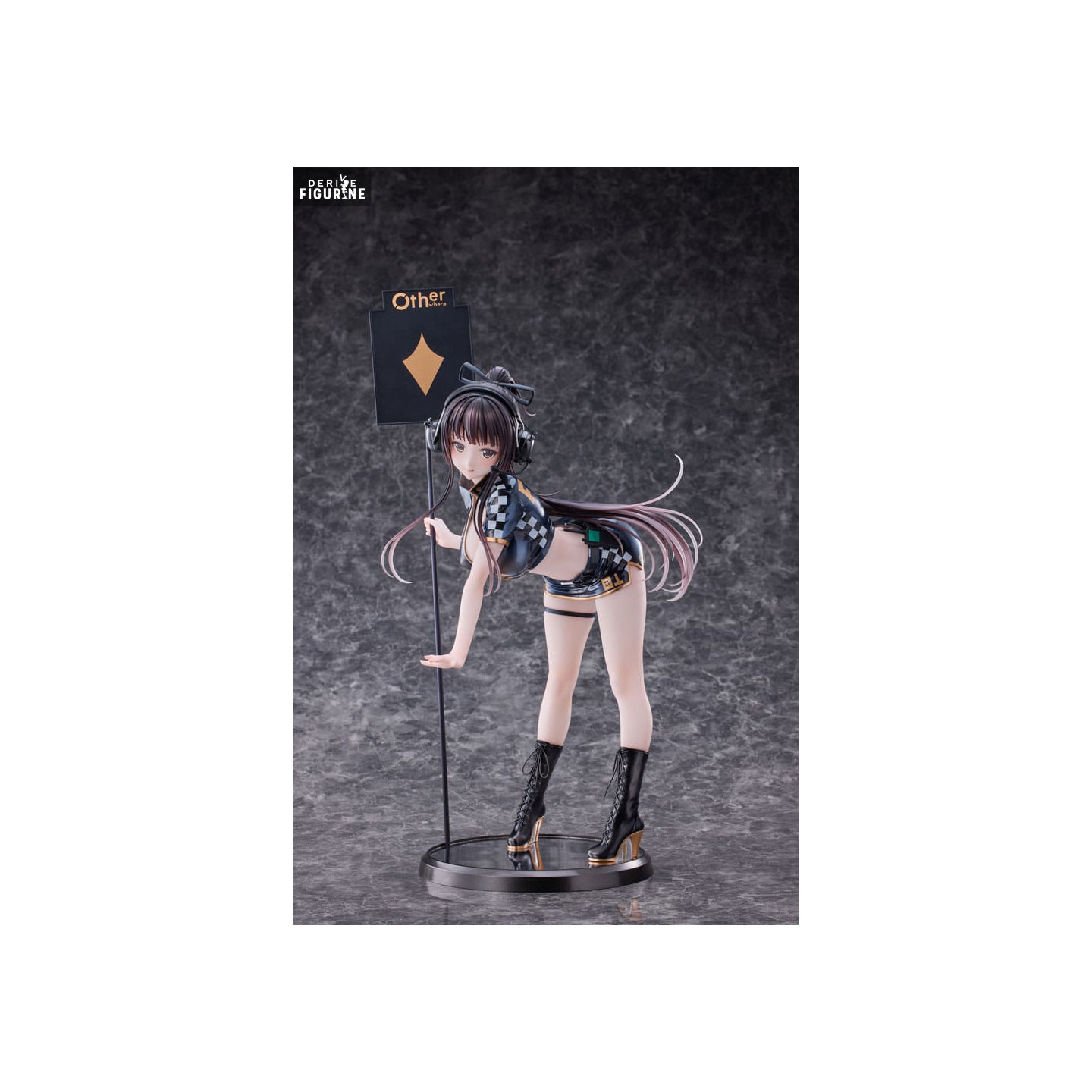 Cette figurine en PVC, mesurant environ 43 centimètres de haut, est réalisée à une échelle impressionnante de 1/4, ce qui permet de véritablement apprécier la finesse des détails, des lacets de ses bottes à ses écouteurs high-tech. Le fabricant PartyLook a su capturer avec précision l'essence d'une Racing Girl moderne, avec une palette de couleurs contrastées et un socle détaillé qui évoque l'atmosphère des circuits automobiles.