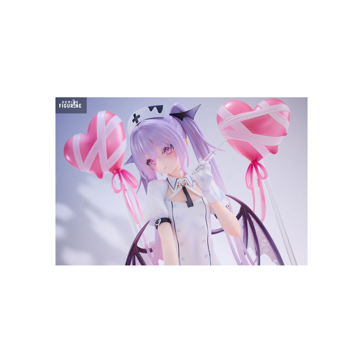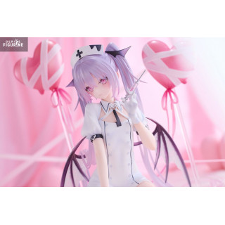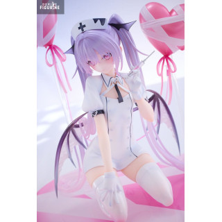 Dans un monde où douceur et mystère se mélangent, Eve Sweet Toxic, imaginée par l'illustrateur Rurudo, captive instantanément par son apparence à la fois envoûtante et subtilement provocatrice. Cette figurine la représente dans une tenue d'infirmière revisitée, aussi charmante qu'énigmatique, qui joue sur les contrastes entre innocence et séduction. Les longs cheveux lavande de la jeune femme, délicatement coiffés en couettes flottantes, encadrent son visage à l'expression presque rêveuse, tandis que son regard rose hypnotique semble percer le cœur des spectateurs. Munie d'une seringue tenue avec une élégance nonchalante, elle incarne une douceur troublante renforcée par ses accessoires et détails minutieusement sculptés.