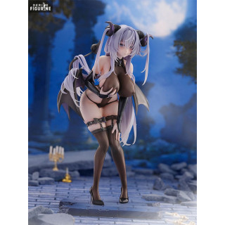 Shion Alfine, représentée ici dans sa version Little Devil, est une création originale qui incarne à la perfection le charme envoûtant et la tentation malicieuse. Avec son apparence de succube séduisante, Shion dégage une aura mystérieuse et irrésistible. Ses longs cheveux argentés, élégamment dégradés de nuances de violet, encadrent son visage délicat et renforcent son regard captivant. Les cornes noires et violettes qui ornent sa tête, ainsi que ses ailes de démon finement sculptées, soulignent son caractère de créature de la nuit, à la fois sombre et fascinant.