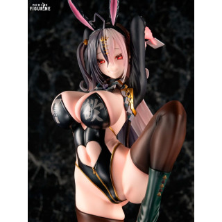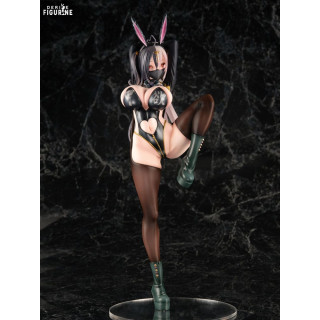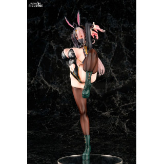 La figurine Towa, inspirée d’une illustration emblématique réalisée par Daiji, nous présente une pose dynamique et audacieuse, captivant immédiatement le regard. Ce modèle saisissant, fabriqué par Pleiades, est d'une taille impressionnante de 34 centimètres et réalisé à l’échelle 1/5, ce qui permet de retranscrire chaque détail avec une finesse exceptionnelle. Towa arbore une tenue noire et or particulièrement travaillée, agrémentée d’éléments rappelant un style de combat ninja, tels que son masque et ses bottes montantes. La pose acrobatique met en valeur son incroyable souplesse, avec une jambe relevée qui donne du mouvement et de la puissance à l’ensemble. Les oreilles de lapin rose vif ajoutent une touche d’excentricité, contrastant parfaitement avec le côté sombre et mystique de sa tenue.