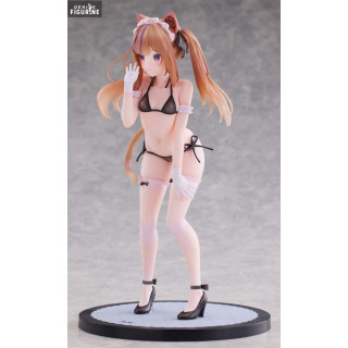 Mafuyu Leo, personnage issu d’un univers original, est présentée dans cette figurine raffinée qui capture toute sa délicatesse et son charme unique. Avec ses traits félins, ses oreilles de chat et sa longue queue, Mafuyu Leo incarne une aura à la fois mystérieuse et captivante. Cette représentation met en valeur sa tenue légère et élégante, un bikini noir orné de petits nœuds et de détails subtils qui accentuent son allure sensuelle et gracieuse. Ses longs cheveux blonds, attachés en couettes, et son regard intense ajoutent une touche d’élégance à l’ensemble.