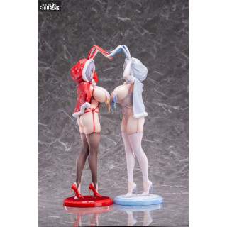 Les figurines Snow Bunny Deluxe, illustrées par l’artiste talentueux Mataro, capturent toute l'élégance et le charme d’un design original empreint de douceur hivernale et d'une touche sensuelle. Disponibles en deux versions distinctes, rouge et bleu, ces représentations mettent en scène une femme élégante et séduisante habillée d’une tenue évoquant à la fois le lapin classique et les nuances enneigées d’une saison froide. Les détails délicats, comme les bas transparents, le capuchon bordé de fourrure et les talons assortis, reflètent un soin méticuleux dans la réalisation.