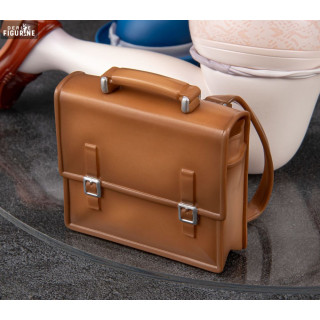 Sa tenue évoque l’uniforme classique d’une élève modèle : chemise blanche, nœud rouge et jupe plissée bleue, cette dernière étant partiellement retirée pour dévoiler des dessous élégants. Le tout est complété par des bas blancs et des chaussures scolaires, renforçant le contraste entre innocence et séduction. À ses côtés, un cartable et un béret posés négligemment au sol ajoutent à la narration silencieuse de cette scène de vie.