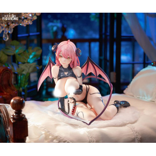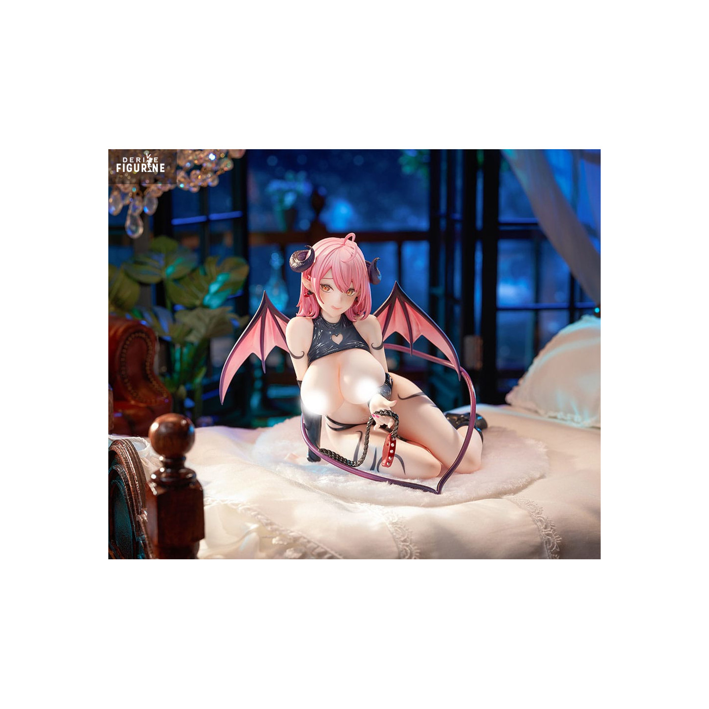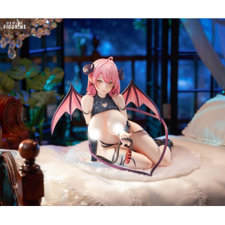 Sculptée avec soin, Alisa adopte une pose allongée suggestive, presque féline, posée sur un socle effet tapis en fourrure blanche, contrastant délicieusement avec son look gothique. Son corps est habillé d’un juste-corps noir échancré orné d’un petit cœur au niveau de la poitrine, tandis que sa queue de succube et ses ailes en dégradé rose foncé viennent renforcer son aura démoniaque ultra glamour.