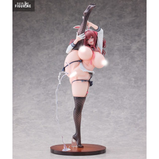 The paintwork accentuates every nuance: her rosy skin contrasts with the satin sheen of her black fishnet stockings, while shades of pink in her cascading hair fall in silky waves down her back. Avant-garde “liquid look” accents on her hips and chest add visual flair, and the lace pads and minimal straps of her outfit are faithfully reproduced, delivering a finish that’s both refined and provocative.