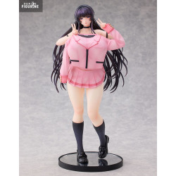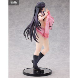 Vêtue d’un ensemble rose au style scolaire décalé, Koto se tient debout sur une base noire, dans une pose volontairement figée et pleine de malice. Sa tenue joue sur les contrastes : haut à manches longues qui tombe légèrement sur les épaules, jupe plissée très courte laissant apparaître les jambes, et chaussettes hautes noir anthracite assorties à ses mocassins vernis.
