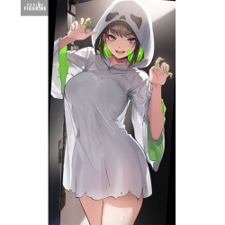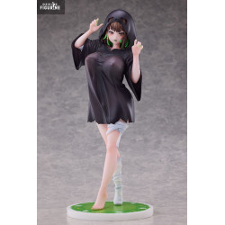 La figurine en PVC montre Miru en hoodie ample et semi-transparent, à capuche décorée d’oreilles façon animal. La transparence du vêtement laisse entrevoir ses formes, sans vulgarité. Sa jambe gauche est partiellement vêtue d’une chaussette longue, tandis que l’autre est nue. La base circulaire blanche et verte fait écho aux couleurs de la capuche. Les doigts en "patte de chat" et le sourire complice donnent vie à l’ensemble.