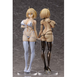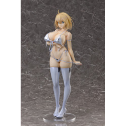 Le design visible met en avant un bikini blanc brillant aux reflets métalliques, composé de lanières fines et de nœuds délicats. Les cuissardes blanches, elles aussi satinées et montantes jusqu’au haut des cuisses, complètent la tenue et ajoutent une continuité visuelle harmonieuse. Les effets de brillance, la tension des tissus et les plis sculptés sont soigneusement reproduits. La figurine repose sur un socle rond transparent, discret et fidèle aux visuels.