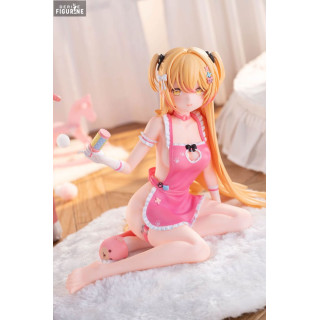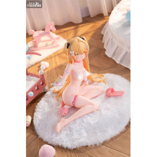 Kurimi Purin est une création originale captivante qui incarne une esthétique douce et envoûtante. Avec son look inspiré de l’univers du moe et de la mode kawaii, elle arbore une expression à la fois innocente et espiègle, accentuée par de nombreux détails charmants. Son tablier rose orné de petits motifs de pattes de chat, ses accessoires délicats et sa longue chevelure dorée soulignent son allure irrésistible. Son design évoque une ambiance chaleureuse et ludique, capturant un instant de complicité et de malice.