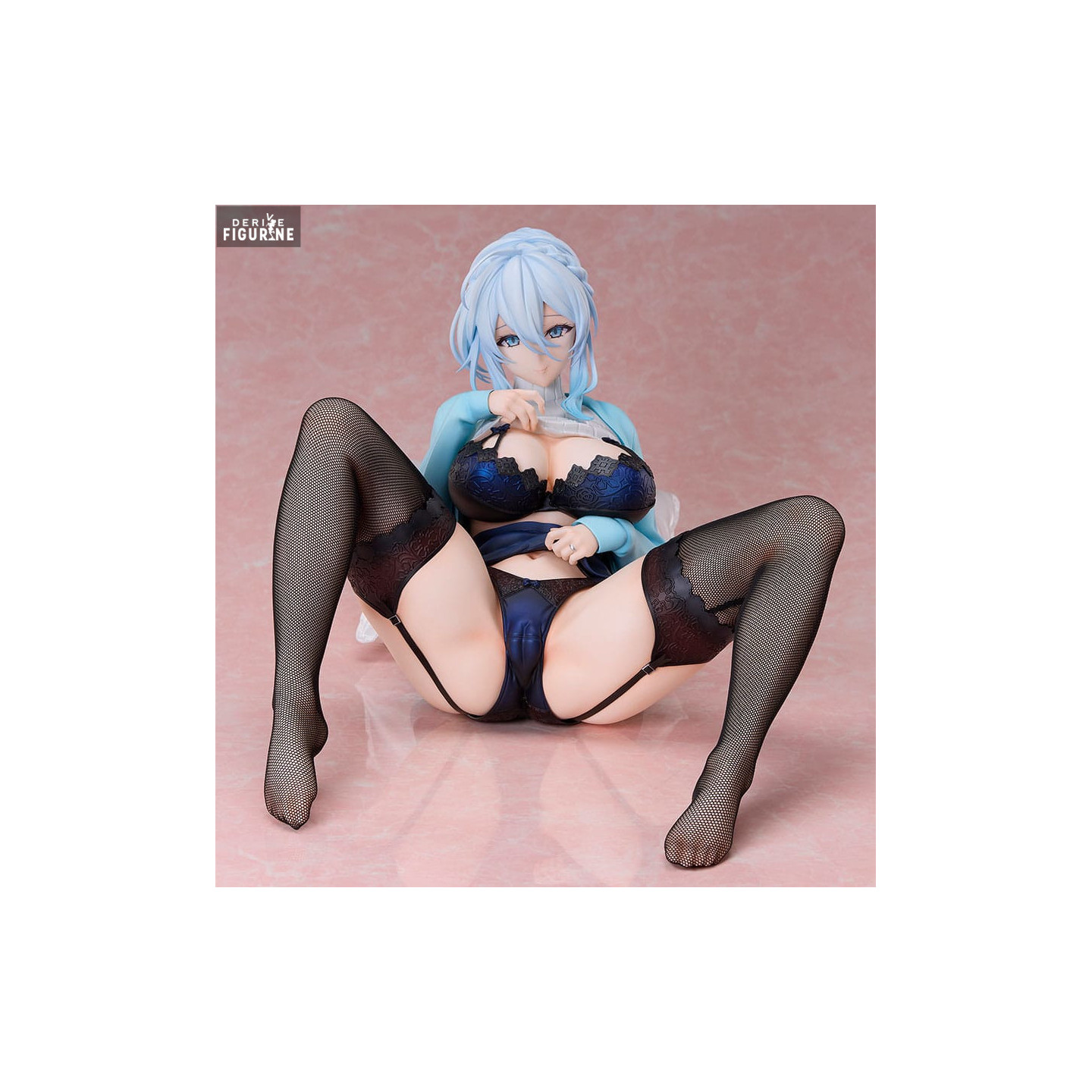 La figurine Mifuyu Yukino - Casual Outfit, fabriquée par BINDing, propose une mise en scène audacieuse qui met en valeur chaque détail de son design raffiné. Avec une hauteur de 20 cm et une échelle 1/4, elle arbore un ensemble de lingerie en dentelle bleu nuit, souligné par un léger kimono décontracté qui glisse délicatement sur ses épaules. Ses bas en résille noire, finement texturés, ajoutent une touche de sophistication, contrastant magnifiquement avec son teint pâle et ses cheveux argentés. Le niveau de finition, du tissu finement sculpté aux courbes harmonieuses du personnage, démontre un savoir-faire exceptionnel.