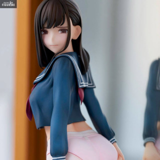 La jeune demoiselle que vous avez sous les yeux est une fois de plus mal à l'aise de se montrer devant vous dans cette tenue, mais cette fois, elle a changé de vêtements. Cette édition limitée est bleue avec des collants blancs et une petite culotte rose.
