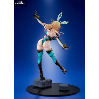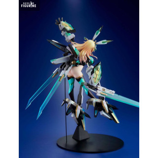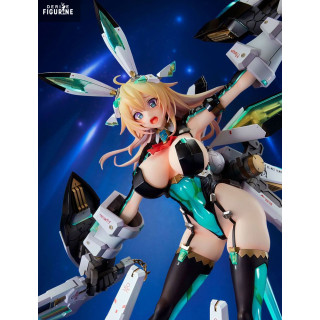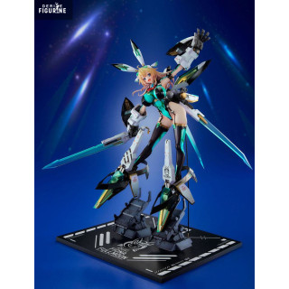 Dans la grande tradition des mecha girls, cette figurine joue sur les contrastes : la délicatesse du visage et du corps s’oppose à la brutalité mécanique de son exosquelette. Les ailes tranchantes, les lames d’énergie turquoise, les propulseurs et articulations apparentes donnent à l’ensemble un style presque "game boss de fin de niveau", mais avec grâce.