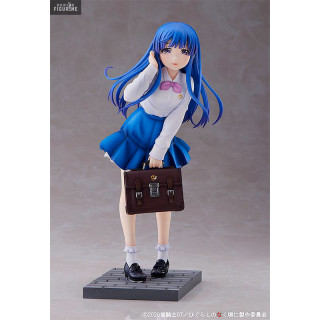 Figurine officielle de Rika Furude, High School Student en PVC mesurant environ 22 centimètres de haut, à l'échelle 1/7. Le fabricant est Miyuki.