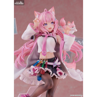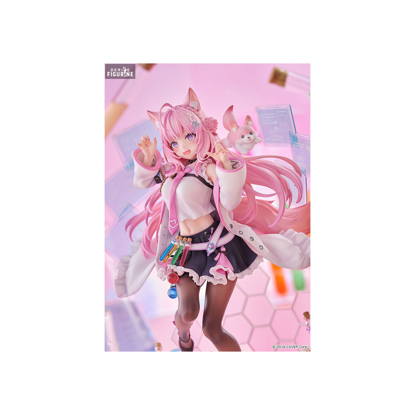 L’univers de Hololive Production regroupe une multitude de talents virtuels qui interagissent avec leur communauté à travers des livestreams, du chant et du contenu varié. Parmi eux, Hakui Koyori s’est imposée comme une figure incontournable grâce à sa personnalité enjouée et son amour pour la recherche, qui se reflètent parfaitement dans cette figurine. Son design est ici sublimé avec une posture dynamique et pleine d’énergie, entourée d’éléments scientifiques flottants qui évoquent ses nombreuses expérimentations. Son long manteau de laboratoire entrouvert, ses accessoires colorés et ses cheveux rose pastel finement sculptés renforcent le charme de cette création.