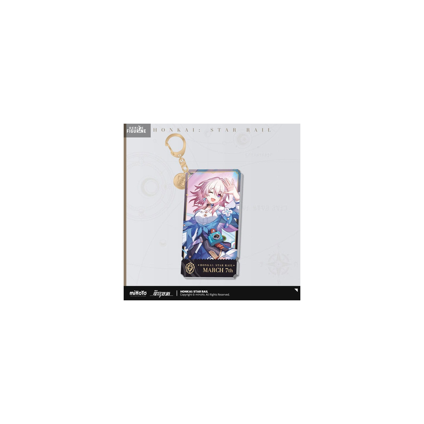 Porte-clés officiel de March 7th en acrylique mesurant environ 9 centimètres de haut. Le fabricant est miHoYo.