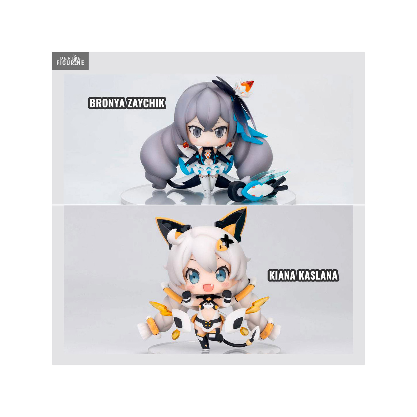 Figurine officielle au choix entre Kiana Kaslana (Bastet's Secret) (~ 9 cm) ou Bronya Zaychik (Herrscher of Reason) (~ 8 cm) en PVC. Elle est issue de la collection Adteroid Series. Le fabricant est MiHoYo.