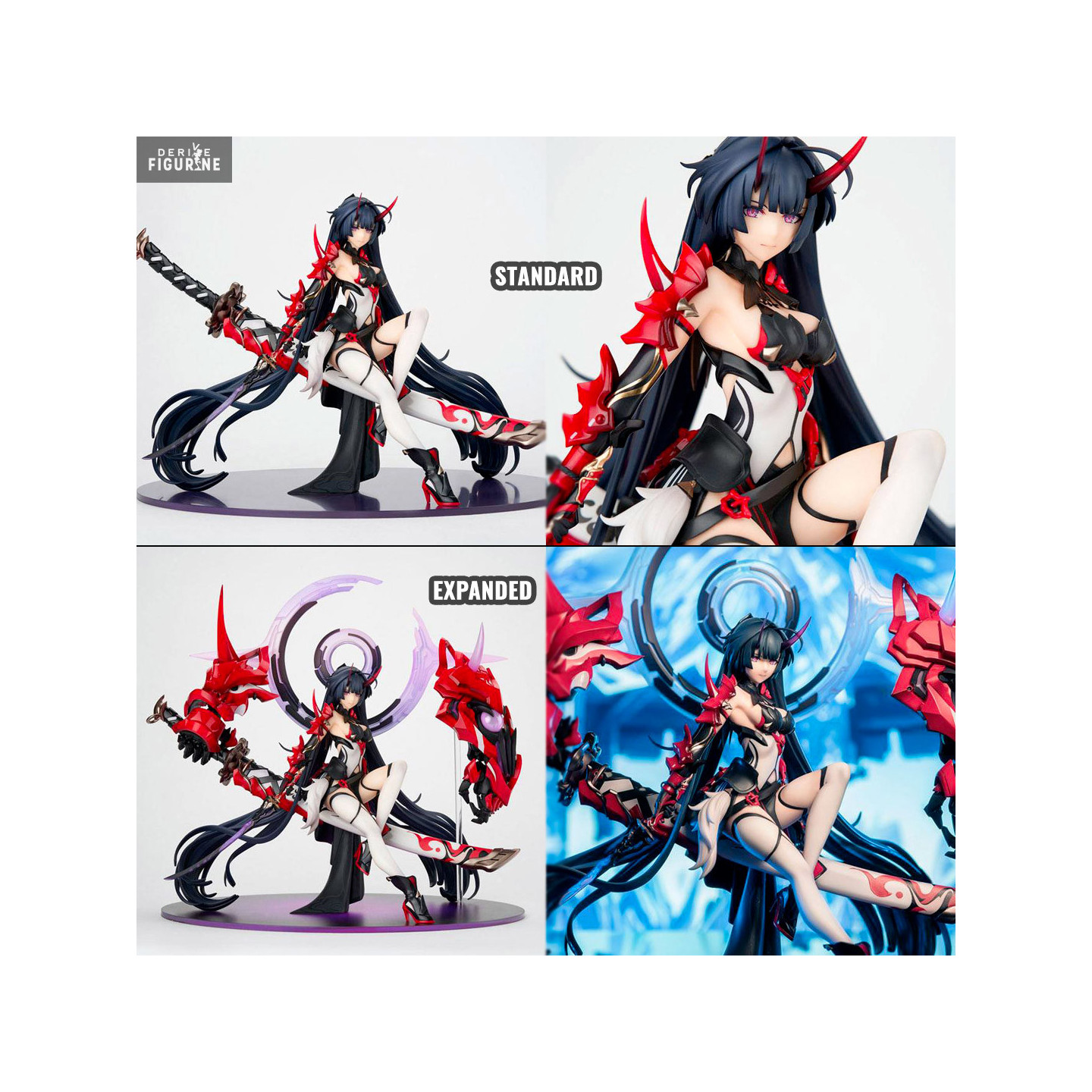 Raiden Mei est l'un des personnages que vous pouvez obtenir dans le jeu Honkai Impact 3rd. Cette figurine est vraiment magnifique et en plus de cela, vous avez le choix entre la version Standard où elle est simplement assise sur une épée géante ou la Expanded avec des bras géants en plus derrière. Peu importe le choix que vous ferez, il sera forcément bon car les deux sont magnifiques.