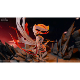 Kiana Kaslana est le personnage principal de Honkai Impact 3rd et est représentée comme une jeune fille capricieuse et entêtée, mais qui sait aussi faire preuve de courage. Ici, vous pouvez l'admirer dans son armure Herrscher des flammes (Herrscher of Flamescion) qui est née de son second éveil. Cette statuette est vraiment aérienne et dynamique et vous pouvez admirer son épée impressionnante.