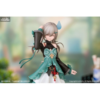 Le visage de Qingque est sculpté avec une grande finesse, reflétant son expression douce et son regard légèrement espiègle. La qualité de la peinture met en valeur les moindres détails de son costume, des plis de sa robe aux accessoires soigneusement reproduits. Sa posture légère et gracieuse, associée à un léger sourire, donne l'impression qu'elle est prête à sortir ses tuiles pour une partie de mahjong, tout en vous défiant d’un air malicieux.