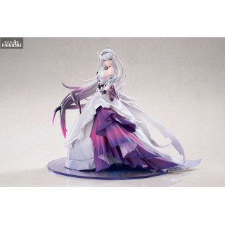 Cette somptueuse figurine de Kiana Kaslana, issue du jeu vidéo "Honkai Impact 3rd," représente le personnage dans sa version "Evening Invite." Kiana, l'une des héroïnes emblématiques de l'univers de "Honkai Impact," apparaît ici dans une magnifique robe de soirée qui mêle élégance et mystère. La robe blanche et violette, agrémentée de motifs rappelant la galaxie, souligne l'aspect à la fois puissant et délicat de Kiana, tout en mettant en valeur sa beauté et sa grâce naturelle.