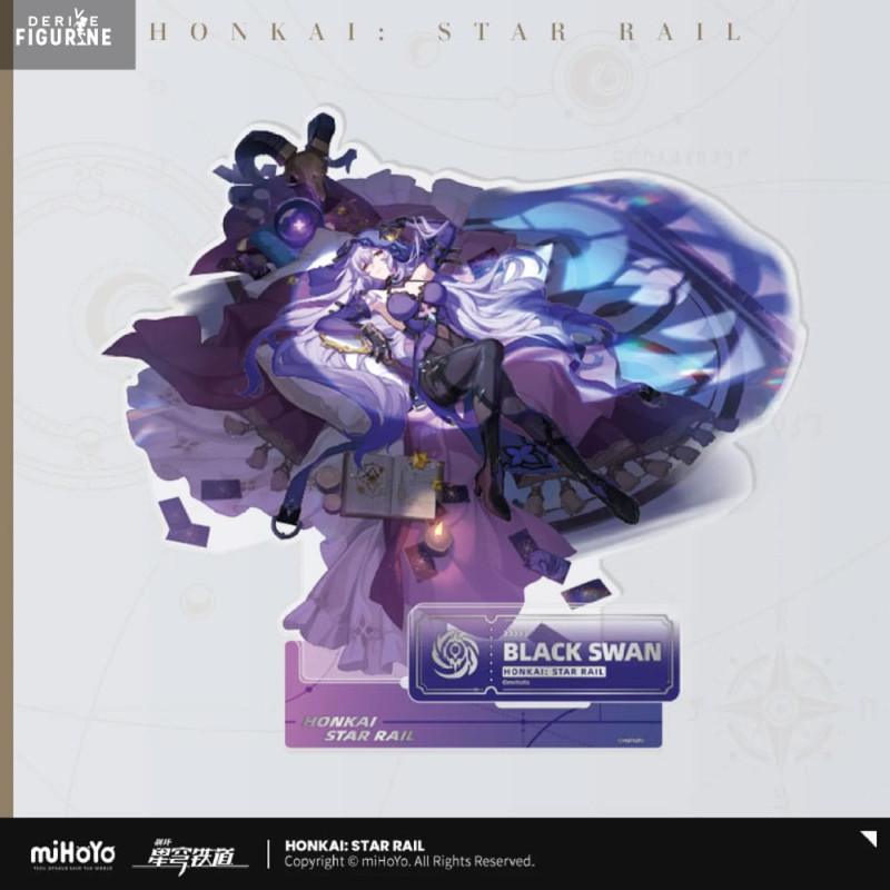 Figurine officielle de Black Swan, Path of the Nihility Series en acrylique mesurant environ 19 centimètres de haut. Le fabricant est MiHoYo.