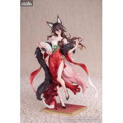 La version "Star Luck – Amass Fortunes" la représente dans une tenue somptueuse évoquant les festivités traditionnelles. Elle porte une robe rouge fendue sur la jambe gauche, décorée de motifs verts et d’un plastron blanc. Un long ruban noir et rose flotte derrière elle comme des queues animales, assorties à ses oreilles pointues perchées sur ses cheveux bruns. Elle tient un éventail ouvert dans une main et une clochette dorée dans l’autre, incarnant l’élégance et la grâce.