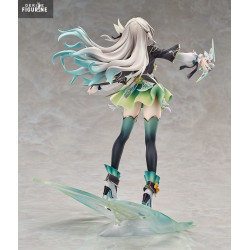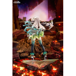 La figurine lui rend hommage avec une mise en scène aérienne : Firefly est figée en plein mouvement, bras tendu, comme prête à attaquer. Ses longs cheveux argentés ondulent dans un effet de vent stylisé. Sa tenue mêle modernité et raffinement : haut noir structuré, manches amples, jupe vert pâle et dégradés lumineux sur les bas. L’arme en main, les ailes stylisées et la base en forme de fleur mécanique accentuent la dynamique de l’ensemble.
