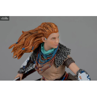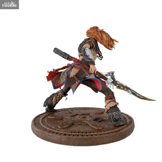 Figurine officielle de Aloy en PVC mesurant environ 21 centimètres de haut, à l'échelle 1/8. Le fabricant est Dark Horse.