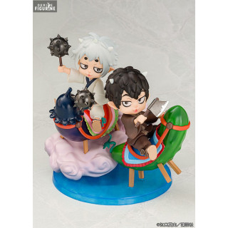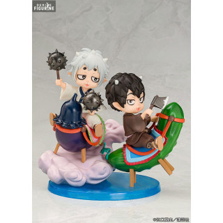 La figurine met en valeur les détails caractéristiques de Karauri et Nasubi, de leurs cornes distinctives à leurs expressions faciales espiègles. Les textures et les couleurs vives des montures ainsi que le socle en forme de nuage ajoutent une touche fantaisiste qui rappelle l’humour et la légèreté propres à Hozuki no Reitetsu. Cette scène ludique capture l’esprit de la série tout en offrant un aperçu amusant des interactions entre ces deux compagnons inséparables.