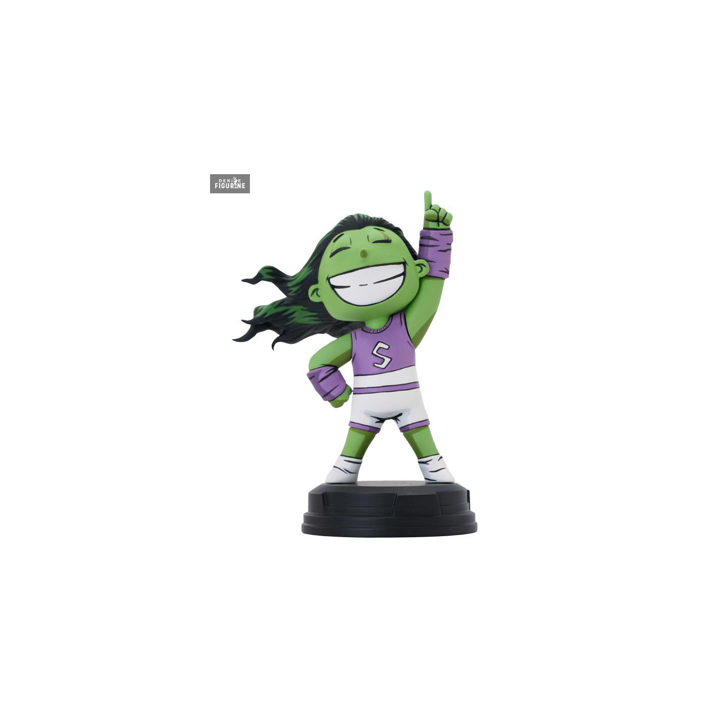 Figurine officielle de She-Hulk mesurant environ 12 centimètres de haut. Le fabricant est Diamond Select Toys.